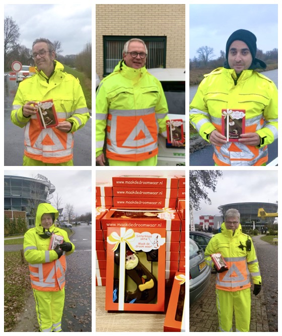 We hebben aan al onze collega’s een luxe chocoladeletter in mooie geschenkverpakking overhandigd! De letters zijn onderdeel van de Sinterklaasactie “Maak de droom waar” van Stichting Welzijn Gehandicapten Nederland, van de opbrengst van de actie worden droomreizen voor gehandicapte kinderen gerealiseerd.