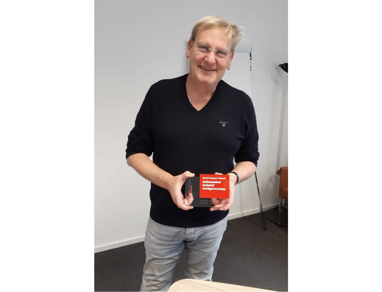 Helaas kon de werkgeversbijeenkomst én uitreiking van de Social Impact Award van WerkgeversServicepunt Baanbrekend Drechtsteden dit jaar niet door gaan. Desondanks hebben we een award ontvangen. Inmiddels heeft de award een mooie plek op ons kantoor gekregen.