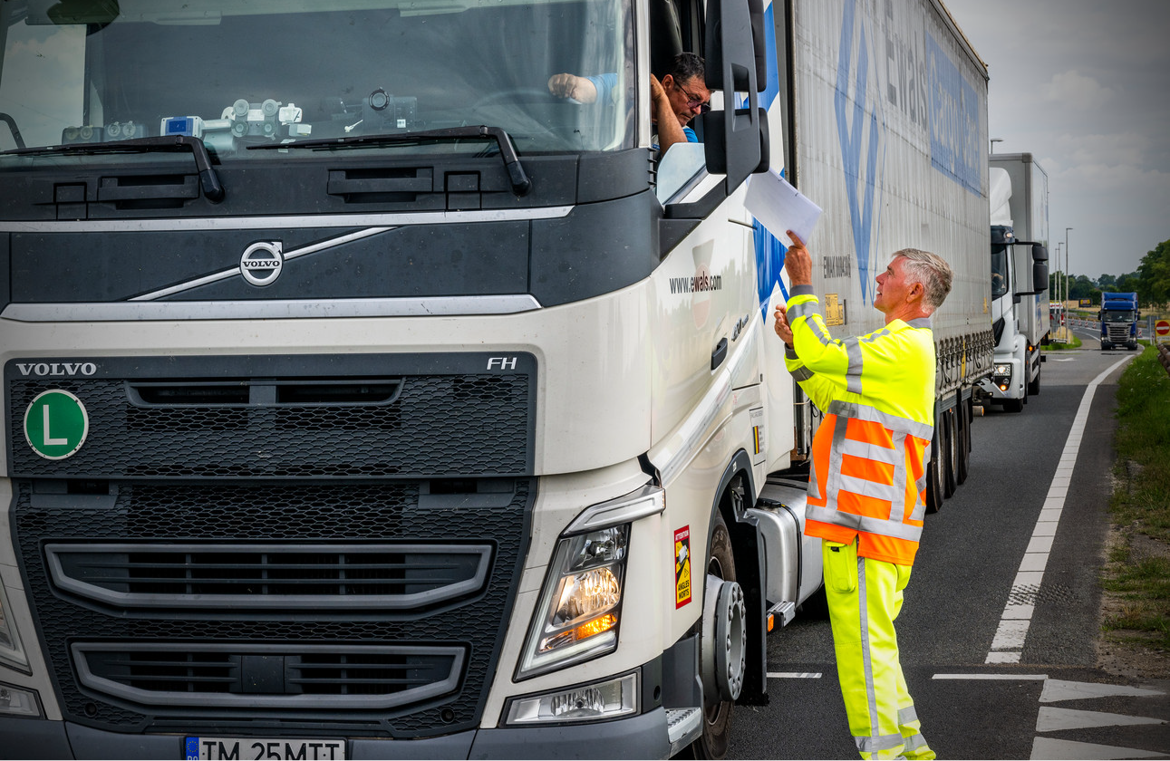 En het werkt, zien we. Aanspreken als het kan en doorverwijzen in de eigen taal naar de A16. Chauffeurs reageren nagenoeg allemaal positief.